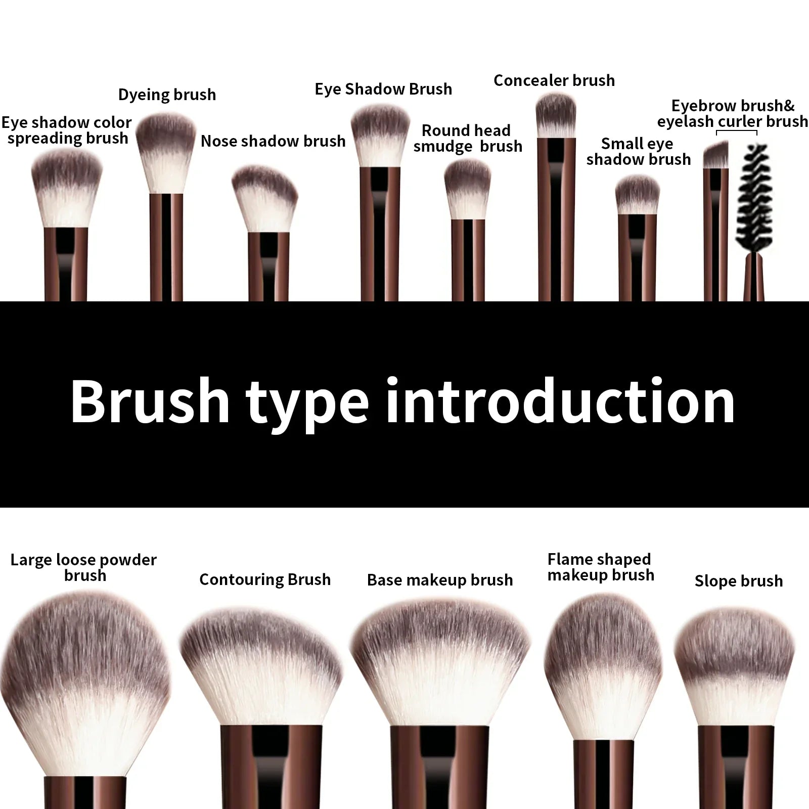 Used With: Blusher,Concealer,Eye Shadow,Eyeliner,Foundation,Lip,Powder,Sets & Kits,Eyelashes,Bronzer Brush,Sculpting Brush,Highlighter Brush,Eyebrow Brush